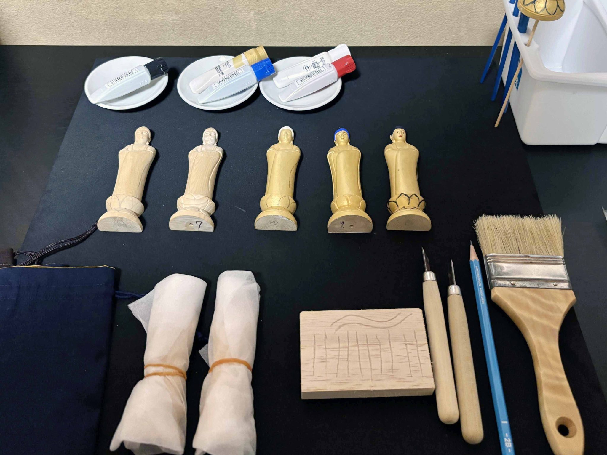 運慶の彫像に因んで、本物の仏師が作成したミニ仏像のキットを自分で完成させて着色まで行い、その画像をバーチャル空間の仏像に奉納。3 時間、提供金額 15,000円(宿泊者以外は 20,000 円)。