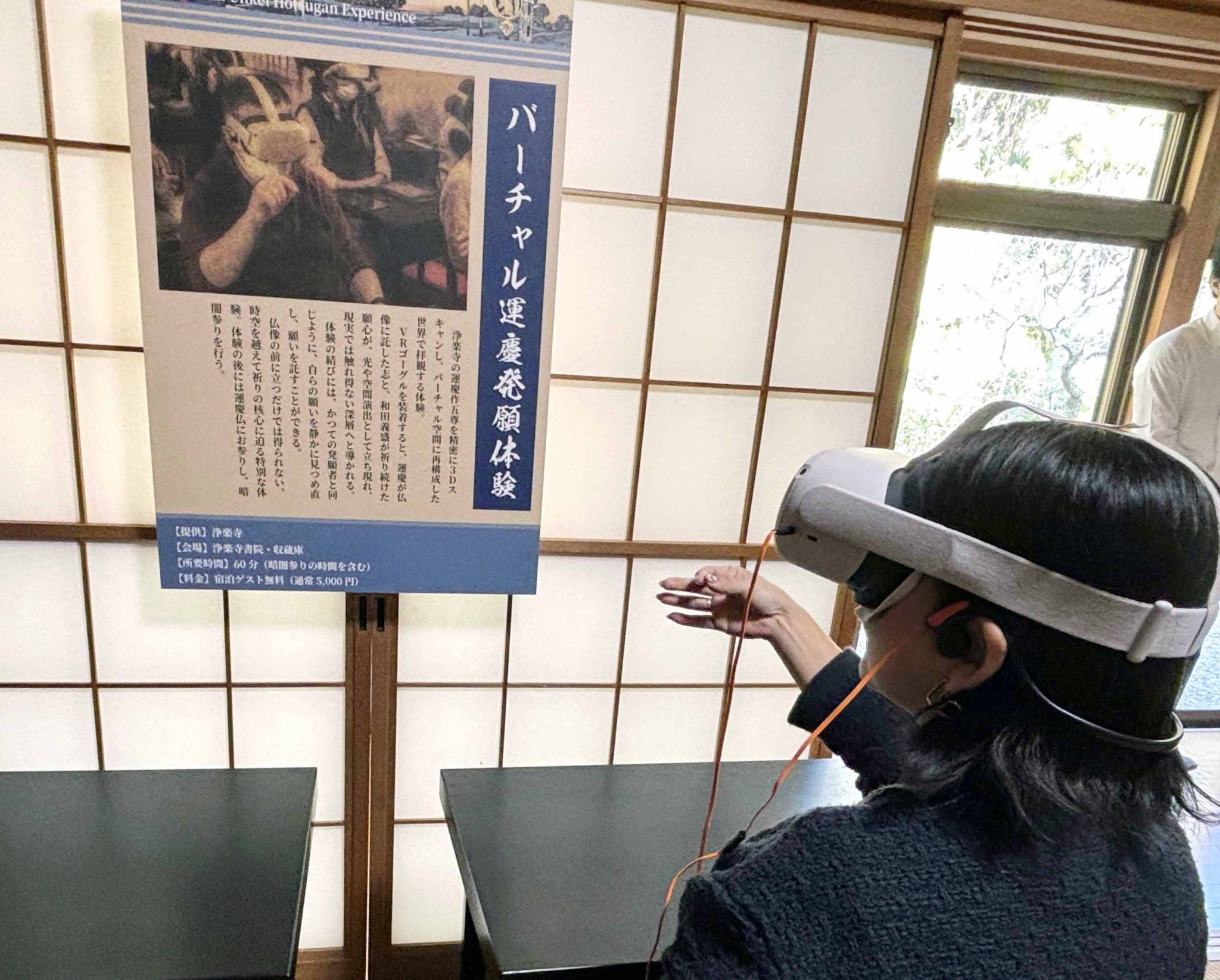 源頼朝の幕府成立に貢献した三浦一族の武士で、浄楽寺の仏像を発願した和田義盛と、その仏像を造像した運慶の精神性に迫る VR 体験。30 分、宿泊者無料(宿泊者以外は 5,000 円)。